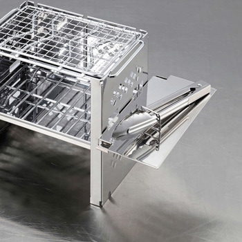 ソロBBQに最適なミニトングです。カマドスマートグリルB6型にぴったりな収納サイズです。収納バッグにグリルと一緒に収納可能です。カマドスマートグリルB6型用マルチパネルに置けるサイズです。収納ストッパー付き。収納ストッパーで固定すると、トング先端が卓上に付かずに置けます。