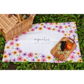 フォトジェニックなデザインのレジャーシート。地面の冷たさと凹凸をやわらげるクッション素材。遠足やお花見、ピクニックに。手軽に使える1~2人用サイズ。小さくたためてかさばらない。裏面アルミ蒸着仕様で湿気や冷気を防ぐ。本製品をお買い上げいただくと、その収益の一部が公益財団法人日本花の会を通じて潤いのある環境づくりに役立てられます。