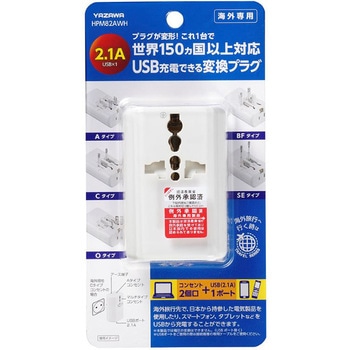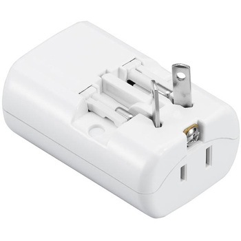 海外用マルチ変換プラグUSB付2A 白