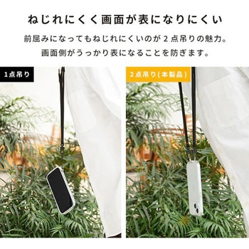 ・スマートフォンを2点で吊るすことで、クルクル回らず安定して使える