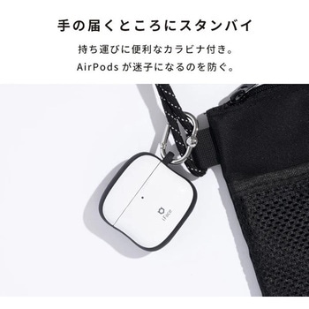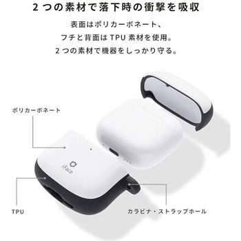 大切なAirPodsに傷がつかないよう表面は頑丈なポリカーボネート素材、側面は持ちやすいTPU素材を使用。