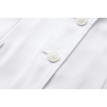 フォークの高級ライン「F Lab.」からレディースドクターコートが登場。数多くのアパレルブランドから注目されるMADE IN JAPANの小松マテーレの機能性・素材を使用。 体型や気分によって取り外し可能な薄手の肩パッドを付けることで、肩回りの印象をアップ。すっきりとした女性らしい小ぶりな衿は、デコルテから首元の印象を軽やかにしてくれます。診察時に邪魔にならないリターン仕様の袖口、やや深めのパッチポケットは裏地付きでしっかりとした作りに。 デザイン性はもちろん、機能性も抜群なレディースドクターコートです。