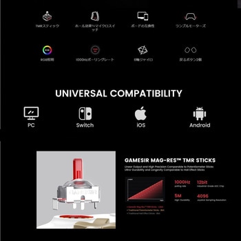 TMR(トンネル磁気抵抗)技術を使用したモバイルゲーミングコントローラーです。