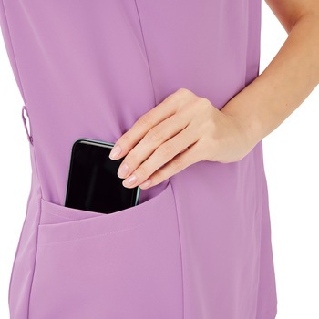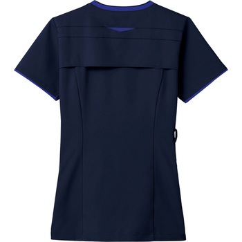 ベンチレーション機能搭載のレディースジップスクラブ。後身頃のベンチレーションは、空気が抜けるだけでなく、より熱がこもらないメッシュ生地を採用。スクラブ内の熱や不快感を排出してくれて、オールシーズン快適な着心地です。 使用しているアリオンストレッチは、軽くて丈夫な素材で伸縮性のよいストレッチ生地。動きやすさはもちろん、ポリエステル100%で優れたイージーケア性も魅力です。丸首のデザインは可愛らしい印象に。体に沿った形で、女性の曲線的な美しさを意識したメリハリのあるシルエットは、ウエスト周りをスッキリ見せてくれます。羽織って着られるジップタイプなので、髪が乱れたりメイクが崩れる心配もなし。女性に嬉しいレディースジップスクラブです。