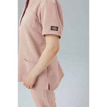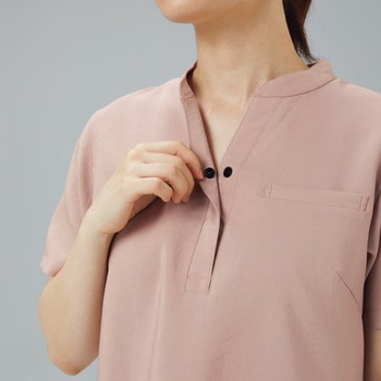 大人気ディッキーズシリーズの新提案アイテムである、女性らしいシルエットが魅力のスタンドカラー・スキッパータイプのレディーススクラブが登場。SY加工(ビンテージ加工)で何度もウォッシュをしたようなシボ感のある独特な風合いが魅力の素材を使用。吸水性・速乾性に優れ、適度なストレッチ性で動きやすさを実現しました。同素材で同じカラー展開のジョガーパンツ(6019SC)とのコーディネート推奨。海外のスクラブの着こなしのように、シャツをパンツにインして、すっきりスマートな着こなしがおすすめです。※シャツを出しても着用可。脇ループと両腰ポケットはちょっとした収納に便利。オシャレを楽しめる新鮮なデザインと優れた機能性でオールシーズン快適なレディーススクラブです。