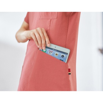大人気ディッキーズシリーズのビンテージ風&ストレッチ素材の女性用スクラブ。SY加工(ビンテージ加工)で何度もウォッシュをしたようなシボ感のある独特な風合いが魅力です。吸水性・速乾性に優れ、適度なストレッチ性で動きやすさを実現。左腕にはボディカラーと合わせたディッキーズタグがオシャレなアクセントになっています。ループや小分けポケット、タブレットが入る大きさのポケットなど、便利な仕様に。優れた機能性とデザイン性で、毎日快適なディッキーズのレディーススクラブです。