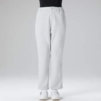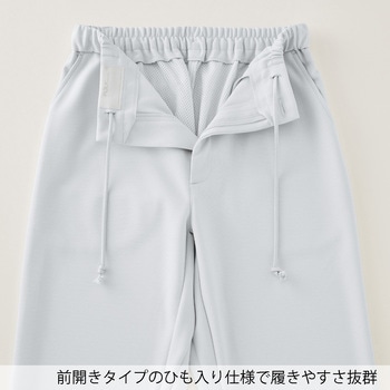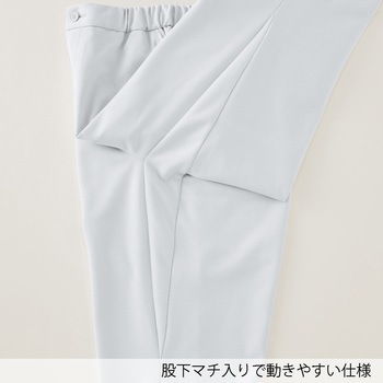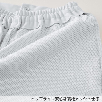 伸縮性の高いニット素材を使用した、収納力と動きやすさに優れた男女兼用ニットパンツ。ニットの良さである伸び感をしっかりと保ち、柔らかくリラックスした着心地のパンツです。生地の内側にはサラクールという機能糸を使用。紫外線透過抑制効果(日焼け防止)と透け防止効果があり、オールシーズン快適です。工業用洗濯にも対応。両脇ポケット、後ろポケットも大きめで収納力抜群。内側のおしり部分にメッシュ素材を施しているので、下着のあたりが出にくく女性に安心して履いていただけます。股下にマチ(四角い布)を付けたことで、足を開いた時につっぱり感の無い着心地なのも魅力。椅子に座って足を広げて施術する場合や、床に座ってリハビリ補助などを行う場合にも快適にお仕事ができる、男女兼用の多機能ニットパンツです。