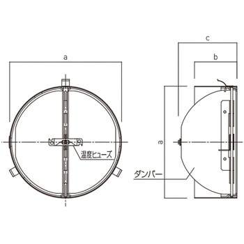 火災等によって温度が72℃以上になりますと、ヒューズが溶けてバネの動きにより自動的に蓋がしまり、火気の流れを遮断します。