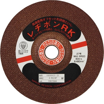 研削材:アルミナ、結合剤:熱硬化性樹脂、補強材:ガラス繊維