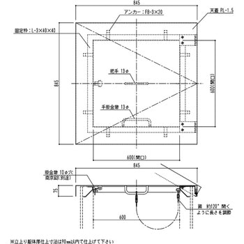天蓋:ステンレス鋼板(SUS304)1.5mm、固定枠:ステンレス山形鋼(SUS304)40×40×3