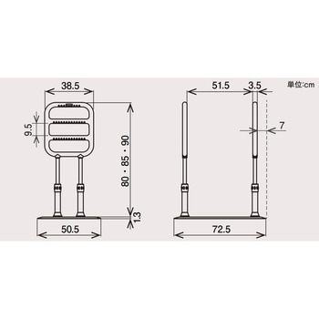 両サイドの手すりにつかまりプッシュアップをすることで安全に立ち上がることができます。また、低い段差の昇降にも安心して使用することができます。