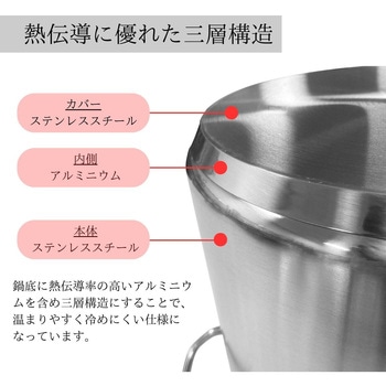 IH(電磁調理器)とガスコンロの両方に対応。保温性が高いステンレス寸胴鍋。