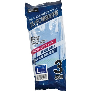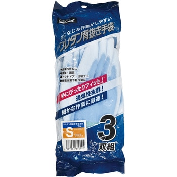 プロユースの背抜きグローブ。手のひら部分には薄く作業性のよいポリウレタン樹脂をコーティング。3双入りの徳用パック。