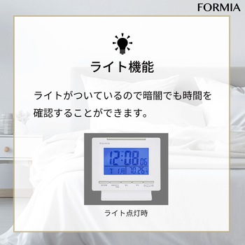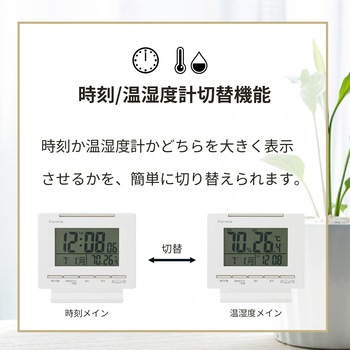 電波時計・カレンダー表示・電子音アラーム・スヌーズ・温湿度計・表示切替