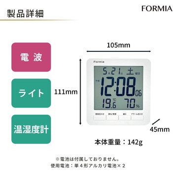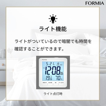 電波時計・カレンダー・電子音アラーム・スヌーズ・温湿度表示・ライト(ホワイト)