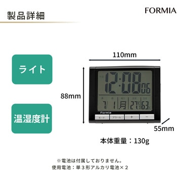 ・カレンダー表示・電子音アラーム・スヌーズ・温湿度計