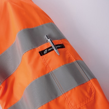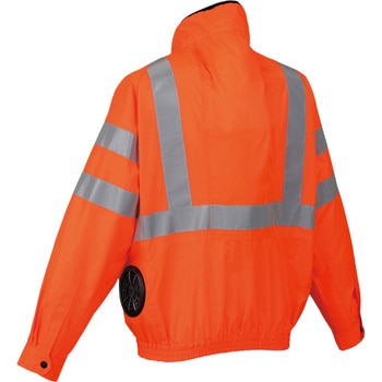 高視認性安全服クラス2を取得したオレンジ長袖ジャンパーです。前後、腕部に反射テープを施し視認性をさらに強化し、暑さ対策のサイドファン仕様、保冷剤ポケットも装備しています。