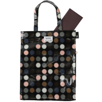 表地:綿、ノンフタル酸PVCラミネート加工 裏地:ポリエステル 持ち手:綿、ノンフタル酸PVCラミネート加工 底板:ベルポーレン マグネットホック