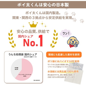 紙は再生紙100%でポリ袋はバイオマスプラスチックを配合したエコ商品です