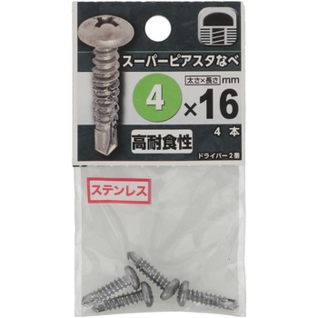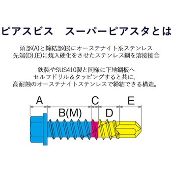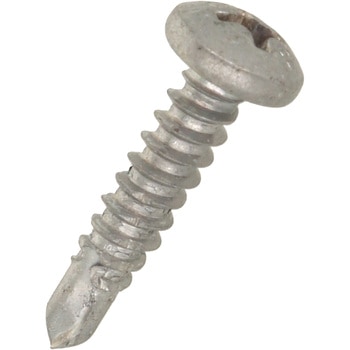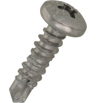 締付けねじ部と頭部は、SUS305ステンレス鋼、タッピングねじ部とドリル先は焼入鉄の複合金属製のため、耐食性に優れたドリルねじです。製品の特性上、磁石に付きます。頭部には焼入れが施されていない為、必ず低トルクで締付けてください。