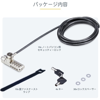 10個セットノートPC用セキュリティロック:標準ケンジントンスロットに対応。ロックヘッド直径18mm、ワイヤー長2m、ワイヤー直径4.4mm、最大引張力200kgの耐切断スチール製パソコンロック