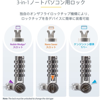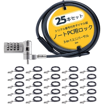 3-in-1ノートPC用4桁ダイヤル錠セキュリティロック(25個入りパック):Noble Wedge、標準スロット(Tバー、ケンジントンスタイル)、Nano Saverスロットに対応。長さ2m、直径4.4mm、最大引張力91.6kgの耐切断カーボンスチール製ケーブル採用