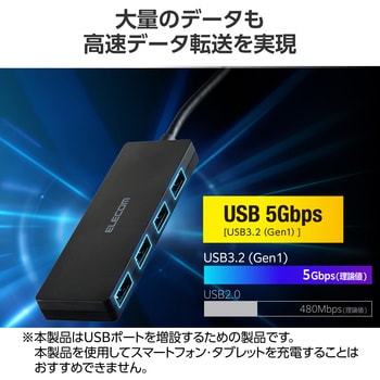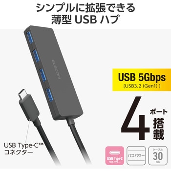 USB-Aポートを増やしてデスクまわりをすっきり。4つのUSB-Aポートを搭載した、USB Type-C(TM)接続のUSBハブです。USB 5Gbps(USB3.2(Gen1))で高速データ転送が可能です。機能を絞った薄型設計で、持ち運びにも便利です。