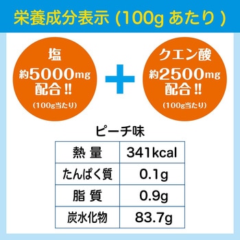 ぶどう糖(国内製造)、食塩/重曹、クエン酸、ステアリン酸Ca、微粒二酸化ケイ素、甘味料(ラカンカ抽出物)、香料