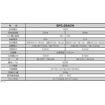 仕様屋内用付属品冷風ダクト用エルボ×1、冷風ダクト×1、排熱ダクト×1、ドレンホース1.5m×1質量(kg)37.4周波数(Hz)50/60消費電力(W)【50Hz】弱:776/強:797、【60Hz】弱:1030/強:1040定格電圧(V)100タンク容量(L)ドレンタンク4定格電流(A)【50Hz】冷風:弱/9.1、強/9.4、送風:弱/1.91、強/1.97、【60Hz】冷風:弱/11.0、強/11.3、送風:弱/2.33、強/2.48寸法(幅W×奥行D×高さH)(mm)401×430×803(ダクト含まず)冷房能力(50/60Hz)(kW)2.2 / 2.5騒音値(dB)62首振角度(°)210入力プラグ2Pプラグ電線仕様-種別VCTF2.0mm2×2心保証期間1年使用環境温度(℃)25~45保護機能サーマルプロテクター、オーバーロードリレー起動電流(A)【50Hz】47、【60Hz】51冷媒封入量(g)540RoHS指令(10物質対応)対応羽根径(Φmm)【冷風側】180、【排熱側】220内容量1台