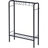 奥行き20cmのスリムなラック圧迫感がなく玄関先や廊下などに置きやすいサイズ帰宅後の定位置収納にぴったり小物やスリッパが置ける棚付き床から高さがあるのでお掃除もしやすいかばんが落ちずらいひねりのフックを使用フレームの直径: 2cm棚の高さ: 床から14cm棚の隙間: 5×16.5cmサイドフック内寸: 幅17.5 奥行き1 床までの高さ77.5cmサイドのこぼれ止め高さ: 床から21cm