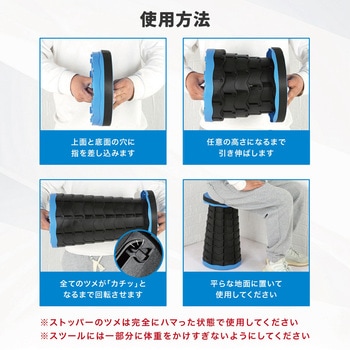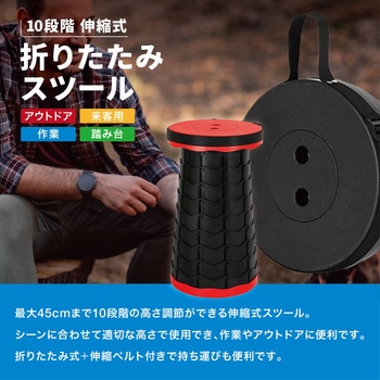6.5cmから45cmまで10段階の高さ調節ができる伸縮式スツールです。シーンに合わせて適切な高さで使用でき、作業時やアウトドアに便利です。