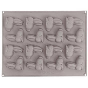 耐熱、耐冷性に優れたシリコン製のうさぎ形チョコモールドです。可愛いうさぎの形をしたチョコレートを一度に16個作ることができます。チョコレート以外にもグミやゼリー、焼き菓子にもお使いいただけます。型離れも良く、使用後の洗浄も簡単です。
