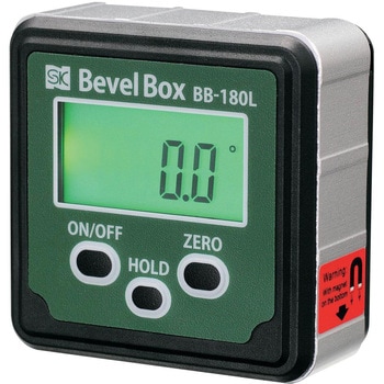 暗所に便利なバックライト付タイプです。コンパクト設計なデジタル角度計で、今まで設置できなかった小さなスペースでも使えます。底面マグネット付です。性能を保証する検査表付です。任意の位置での0設定が可能です。ホールド機能、オートオフ機能付(約5分)です。