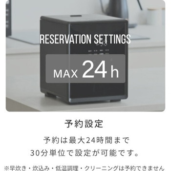 見た目美しいキューブ型炊飯器キューブ形状で生活感を抑えキッチンに統一感を保温:炊きあがると自動で保温モードへ予約:1-24時間まで30分刻みで設定可能【4合・5.5合のみ】低温調理:(時間)1-12時間まで5分刻みで時間設定可能