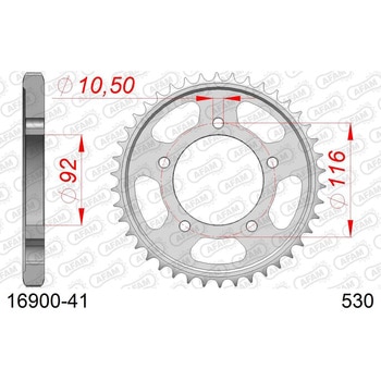 メーカー名:アファムメーカー品番:16900-41販売備考:スチールスプロケットアルミ設定有り(品番17900-41)適合情報:カワサキ[KAWASAKI] ZZR1400 [ZX-14] 06-11 ABS可取り付け穴径:10.5歯数[丁数]:41チェーンサイズ:530色[カラー]:シルバー(素材色) *一部ロットでブラックの場合があります。材質[素材]:スチール(C45鋼)仕上げ(表面処理):高周波焼入れPCD:116mm取付穴数:5穴
