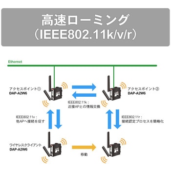 高速ローミング(IEEE802.11k/v/r)により、電波の強いアクセスポイントへの切り替えがスムーズ。AGV等の移動体に搭載できます。