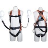 墜落制止時の衝撃を骨盤全体で受け止め、身体保持の安定性に優れているV型腿ベルトです。