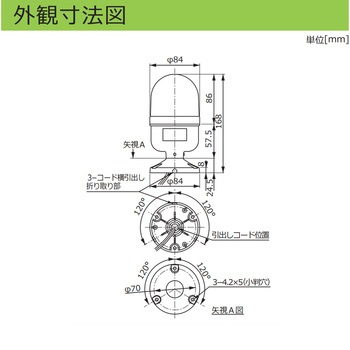 Φ84、台座付きタイプ、独自技術で小型でも視認性バツグン 省スペースに配慮した小型LED回転灯です。