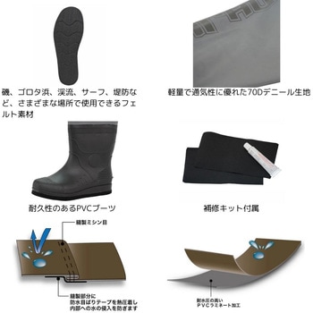 軽量で通気性に優れた70Dデニール生地 。耐久性のあるPVCブーツ。