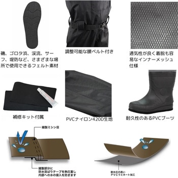 通気性が良く着脱も容易なインナーメッシュ仕様 。耐久性のあるPVCブーツ。