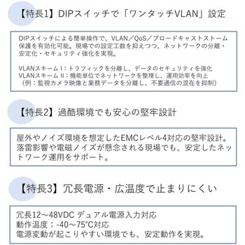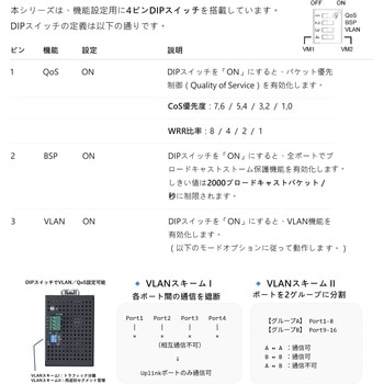 DIPスイッチによるワンタッチVLAN設定に対応。
