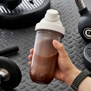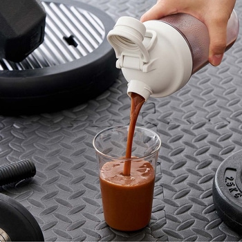 シンプルな形状なのによく混ざるシェイカー。飲みやすい飲み口。畳んで収納できるハンドル付き。完全密閉フタなので鞄に入れて移動できます。付属品(ミキサーボール)不要でお手入れ簡単。