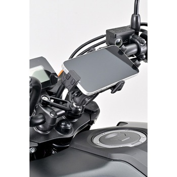 スマートフォンホルダー フレックス FSH用 オプション品。ハンドルポストベース。ハンドルポスト間が78~125mmの車両に取り付け可能です。スマホホルダーを低い位置に設置ができるためライディングを邪魔しない。