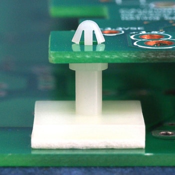 基板の取付け穴にワンタッチで篏合可能な貼付スペーサーです。両面テープですので任意の位置に簡単に貼り付け出来ます。強力な接着テープを使用しています。