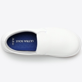 つま先がゆったりしたワイド仕様の軽量キッチンシューズ 。水や油がある滑りやすい場所でも強力なグリップ力を発揮します。またミッドソールの素材には、ふんわりやわらかいクッション性の高いEVAを使用。つま先が上がっていて、つまずきにくいこのシューズは、厨房で必要な機能性だけでなく履き心地を兼ね備えた、快適さを追求した1足です。
