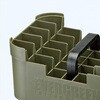 13段収納ポケット(意匠登録済):最大30個収納。ルアーを出し入れしやすい段差構造3段収納ポケット。ルアーの長さに合わせて個別に立てて収納。開口部が広く、取り出しもスムーズ。*1つの収納ポケットにエギなどフック付きルアーを複数入れると、スムーズに取り出せなくなることがあります。本製品の特徴を十分に活用していただくために、1ポケットにルアー1個の収納をおすすめします。 2伸縮ハンドル:持ちやすく、ルアーを取り出す際に邪魔にならない伸縮型。 3傾斜底面&水抜穴:全てのポケット底面に水抜穴を設置。その穴に向かって傾斜する底面形状で、より効果的に排水が可能。 4スタッキング機能:システマチックな使用を可能にする積み重ねてもズレないコーナー形状。 5滑り止めラバー:底面4つ角にリブ形状ラバーを設置し、強力に横滑りを防止。 6E.G.インナーバッカンMに収納可能:E.G.インナーバッカンM(別売)にジャストサイズ。釣行時や釣行後の移動時に、ルアーの飛び出しや水滴漏れを防ぎます。*収納物がストッカーの高さより長い場合、バッカンの蓋を閉めることができませんのでご注意ください。