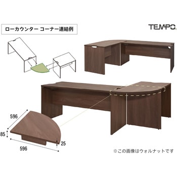 テンポ シリーズ ローカウンター(D596)専用コーナー。テンポシリーズのローカウンター(D596)2台と連結し、L字レイアウトでご利用いただけます。※コーナーは単体で使用できません。必ず両側にローカウンター(D596)を連結してご使用ください。※カウンター本体は別売りです。※単体ではご使用いただけません。※奥行596mmのカウンター用です