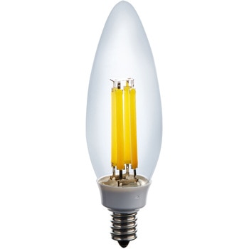 交流電源:100V 50/60Hz共用口金:E12サイズ:全長103X外径32(mm)質量:18g定格消費電力:3.8W定格入力電流:46mA設計寿命:25000h全光束:550lmエネルギー消費効率:144.7lm/W光色:電球色相当(色温度3,000K)クリアタイプ屋内用