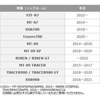 安心の純正部品とオイルをまとめたエンジンオイル交換キットエンジンオイル交換時に必要なモノから、あったら嬉しいモノまでをワンパッケージにまとめたDIYメンテナンスキットです。オイルは安心のメーカー純正オイル「YAMALUBEプレミアムシンセティック」を採用漏斗はこだわりのYAMALUBEオリジナルデザインオイル交換時期リマインドステッカーはメンテナンスノートに貼り付けられるので便利探す手間や買い間違いを防げるように純正部品を同梱