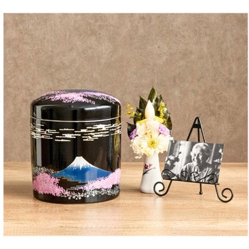 富士山と桜が見事な、豪華な高級感あるモダンな骨壺です